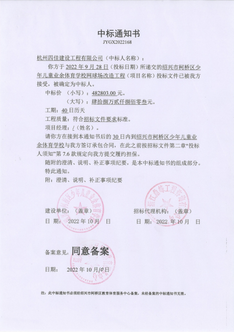 绍兴市柯桥区少年儿童业余体育学校网球场改造工程